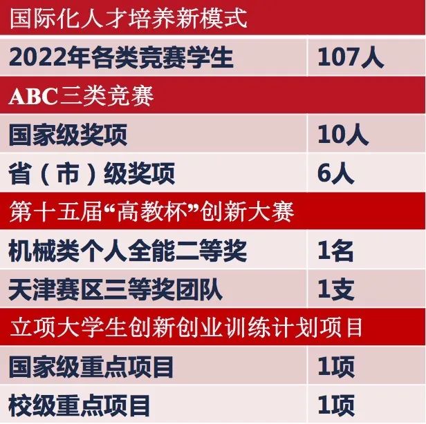 2022年,在各位导师的悉心指导下,我院在科创育人工作中取得良好成绩。ABC三类竞赛中,亚工学子获国家级奖项10人,省(市)级奖项6人,其中1名学生在第十五届“高教杯”全国大学生先进成图技术与产品信息建模创新大赛中获得机械类个人全能二等奖、1支团队获得天津赛区三等奖,立项大学生创新创业训练计划项目国家级重点1项、校级重点1项。