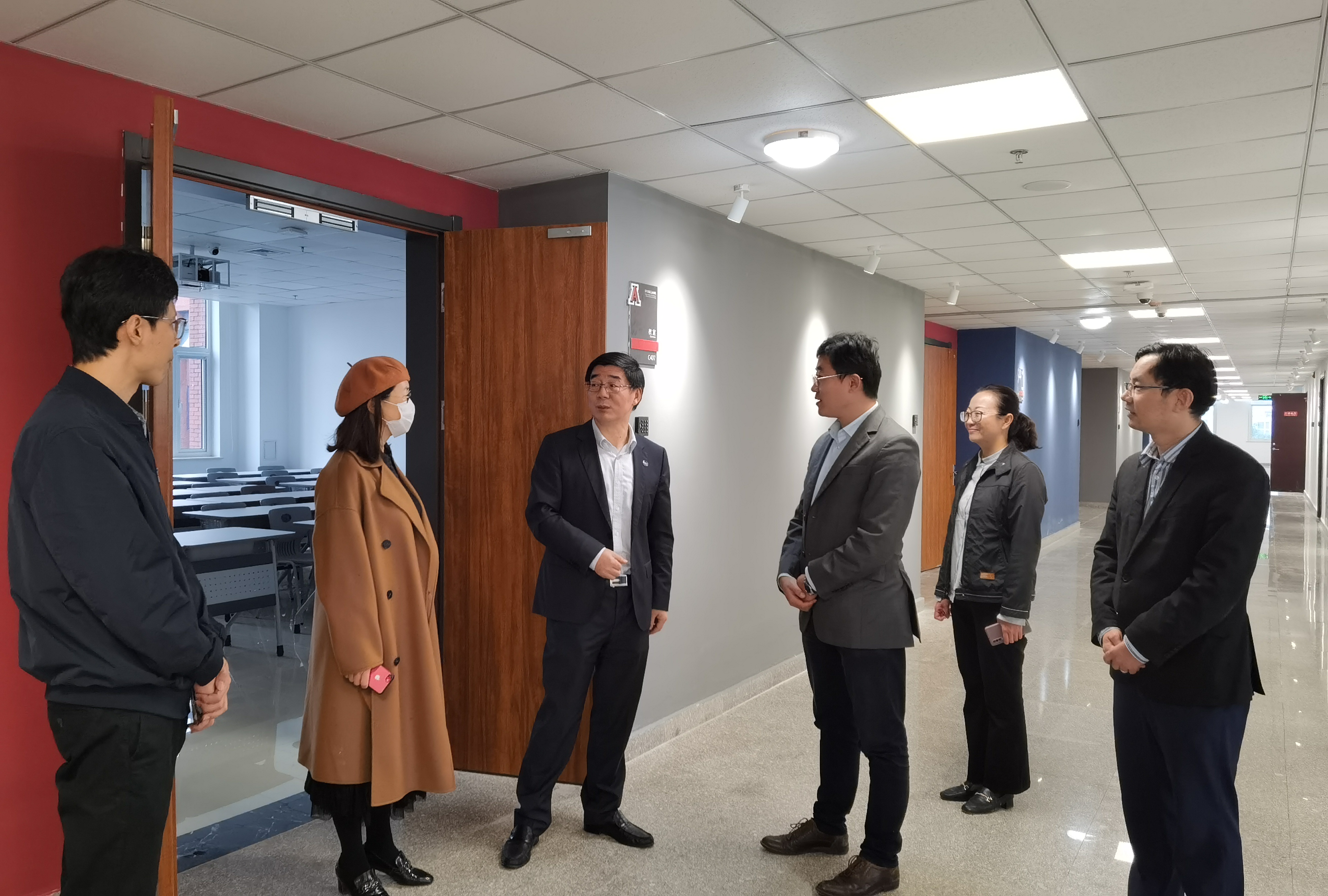 学校办公室副主任王轩、日本AV 相关领导陪同调研。