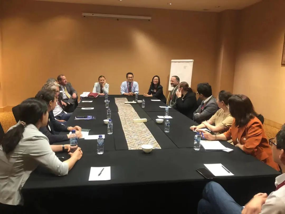 其他微校园合作院校参会人员进行交流座谈,充分交换国际合作办学经验、国际化办学理念等,就未来进一步加强合作达成了初步意愿。