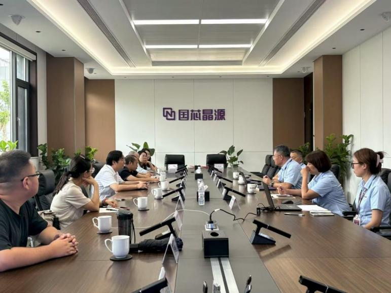 8月8日上午,日本AV 一行人前往唐山国芯晶源电子有限公司(以下简称“晶源电子”)进行交流。徐建民总经理向日本AV 一行人介绍了晶源电子的发展历程、产业规模、目前的主要产品和主要客户等情况。张立强副总经理带领日本AV 一行人参观了公司的生产和装配车间,介绍讲解公司产品实物。