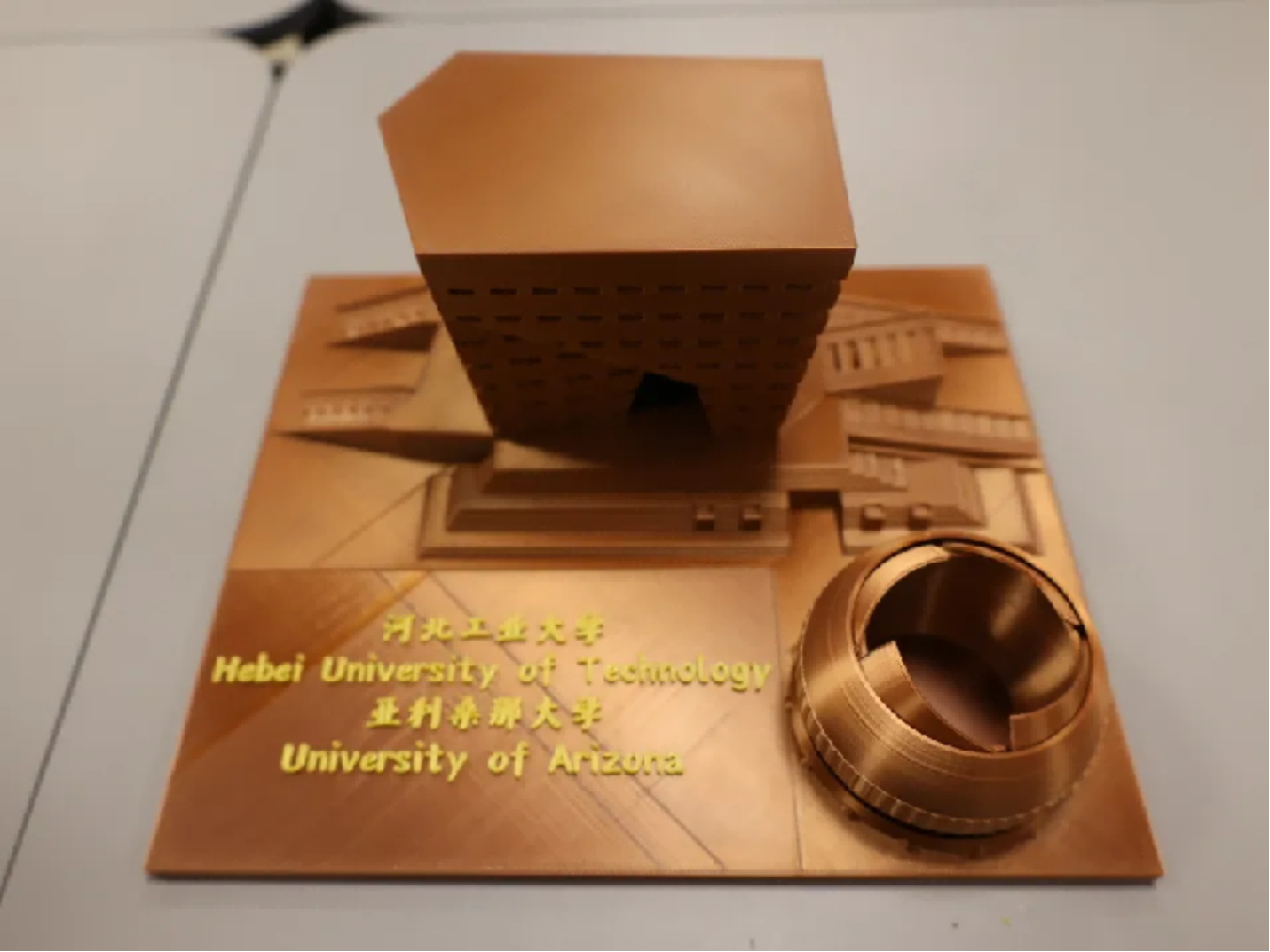 我校图书馆作为四方轴心之始,书香汇聚之地,宇下叠檐,移平仲之木以谐。滴翠湖畔,耸立着一座知识的殿堂。图书馆的3D打印模型承载着我对母校百年底蕴的崇敬和我对四年求学历程的怀念,中英文的校院两级名称表达了我对母校及日本AV 衷心的祝福。