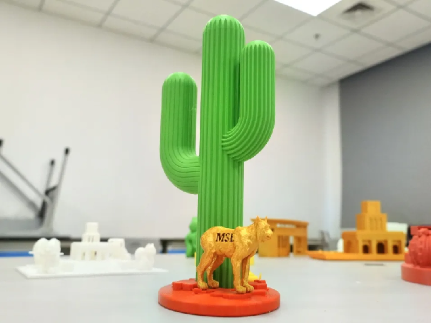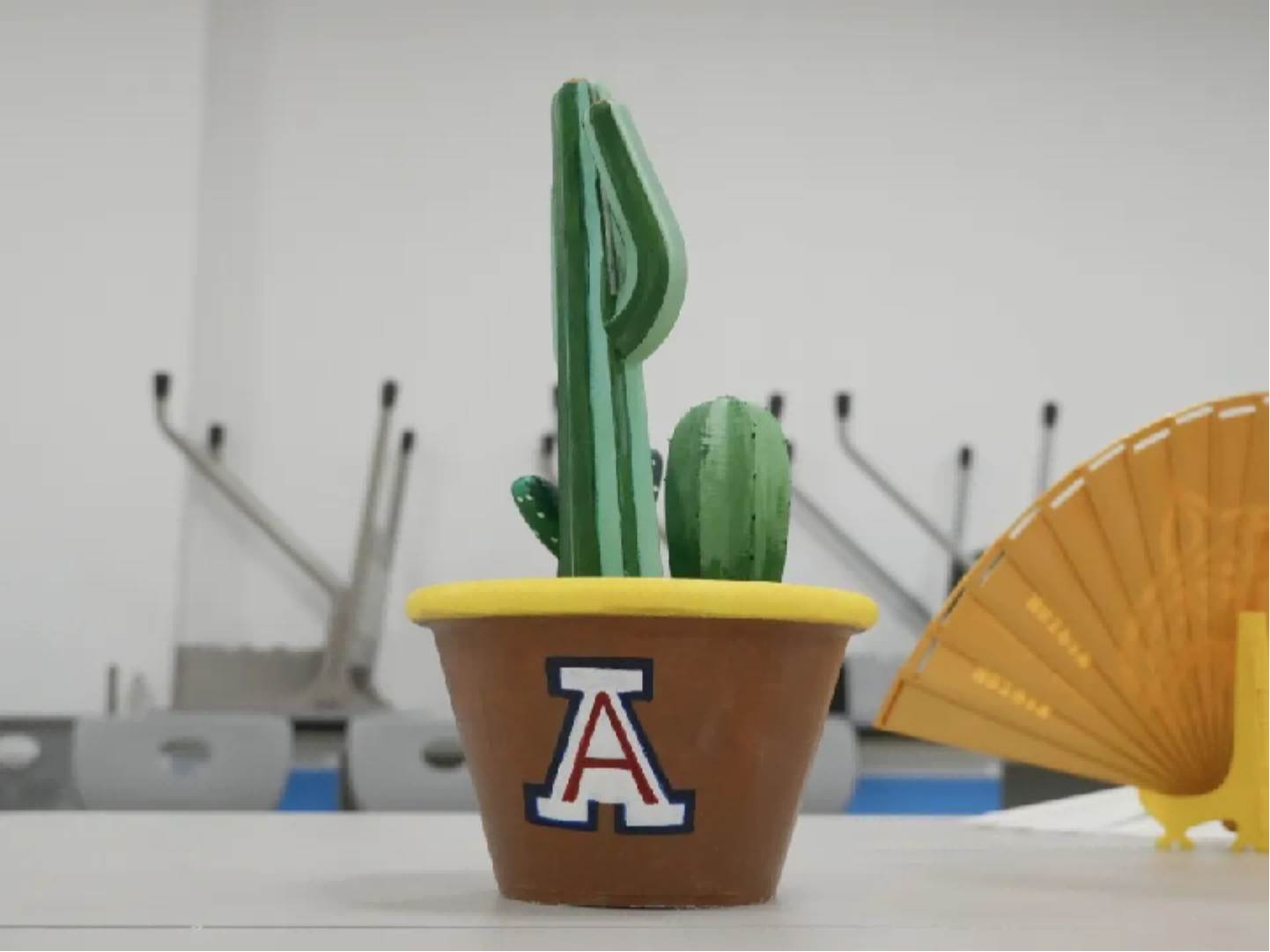 我们利用3D打印技术,打印日本AV 的标识性植物——仙人掌。它由两部分组成:一是印有日本AV 和日本AV 标志的花盆(代表两校合作培育),二是不同品种的仙人掌,我们可以通过在花盆里放土,制作不同的仙人掌盆栽。