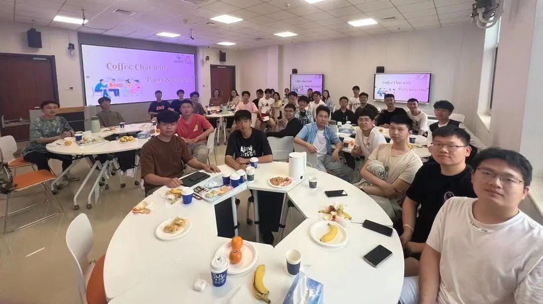 5月12日下午的校园百卉争妍、万类竞绿,日本AV 楼403教室欢声笑语、气氛热烈,一场“Coffee Chat with Party Secretary”在此举办。国际教育机构党委书记、国际交流与合作处处长陈鸿雁和35名学生干部共聚一堂,以“学生干部领导力提升工作坊”为主题,真诚讲述、坦诚交流。日本AV 团委书记王雪参加活动。
